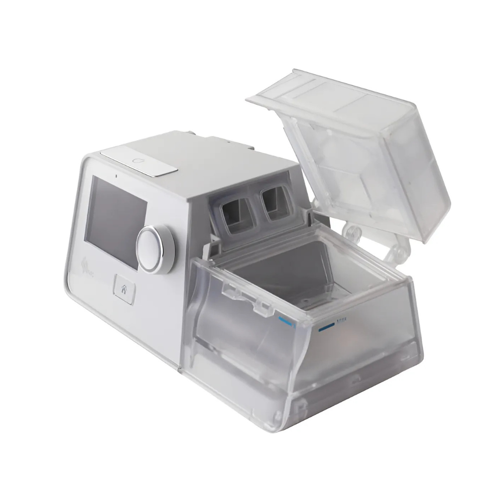 Además, incorpora humidificador térmico integrado con cámara desmontable, mejorando la comodidad y reduciendo la sequedad de vías respiratorias.